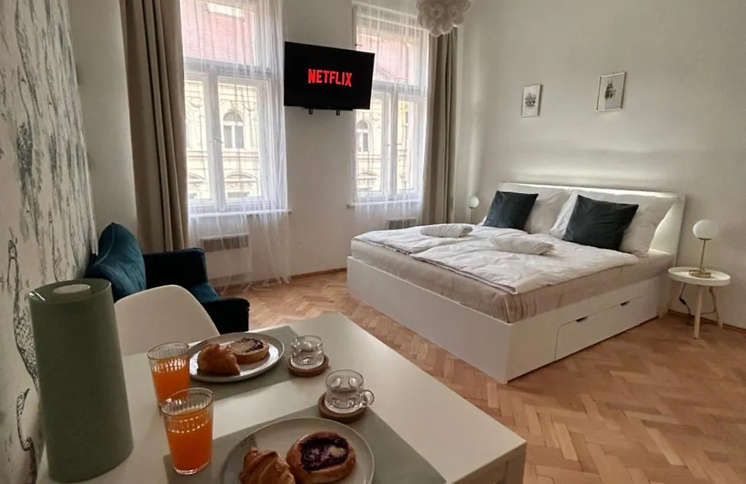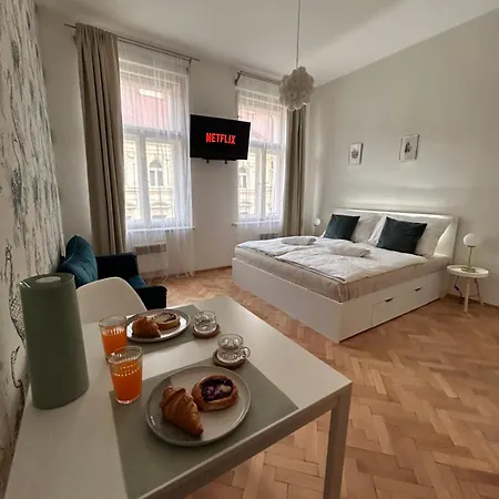 يمكن للضيوف إعداد وجبات الطعام في المطبخ الكامل. هناك العديد من المطاعم، بما في ذلك Slamovka وU Medvídků على مسافة قريبة. تقع محطة حافلات Myslikova في غضون نحو 5 دقيقة سيرًا على الأقدام، وتقع محطة مترو نارودني تريدا على بعد 150 متر.