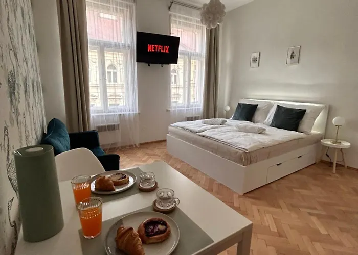 Františkánská Park ligger inden for 1 km fra lejlighed, mens Prags borg ligger 2 km væk. Gæster kan finde Statue of Franz Kafka i området. For en pause fra madlavningen er Slamovka og U Medvídků inden for en 5-minutters gåtur. Petřín-højen er en kort taxatur væk, og Pædagogiske Fakultet er også tæt på.
